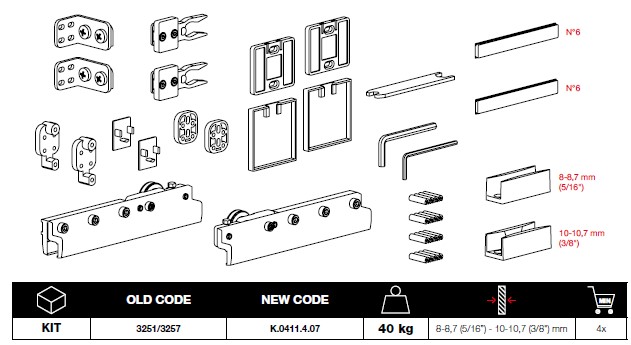 К-т розсувних дверей Clear для скла 8-10мм, на 40кг, хром бріліант
